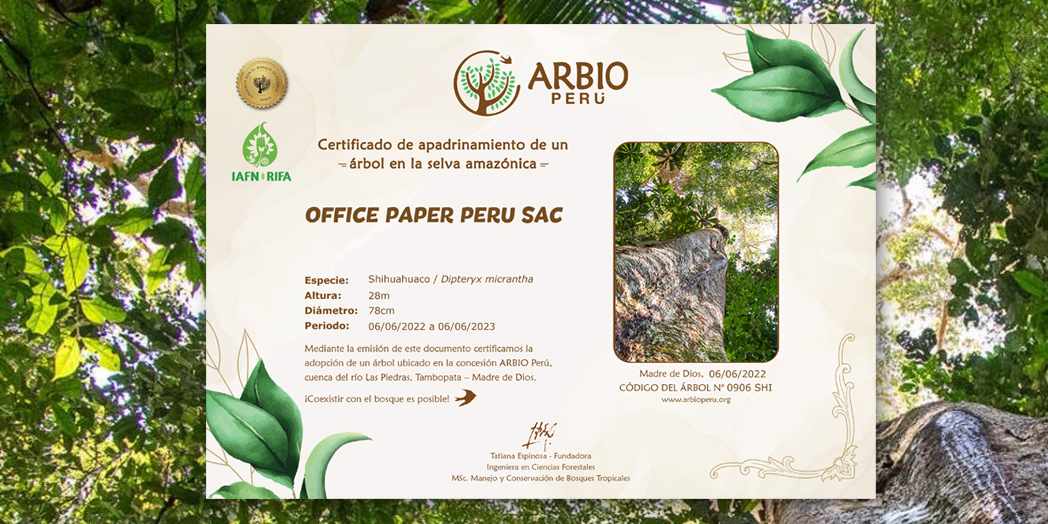 Por segundo año apadrinamos un árbol amazónico Shihuahuaco a través de Arbio.